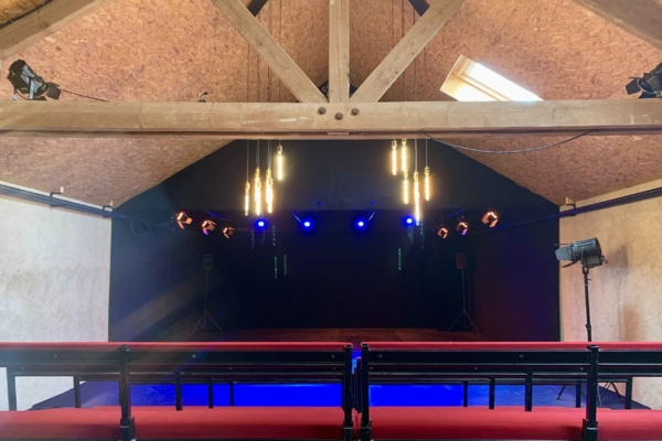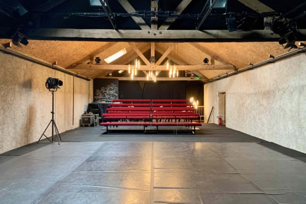 La salle de répétition se trouve à l’étage de ce qui était une étable. Ancien grenier à grain, elle offre un espace de 200m² comprenant un plateau modulable. Vide, tapis de danse au sol, équipée en lumière et son, d’une boite noire : les configurations sont multiples et s’adaptent à votre projet.